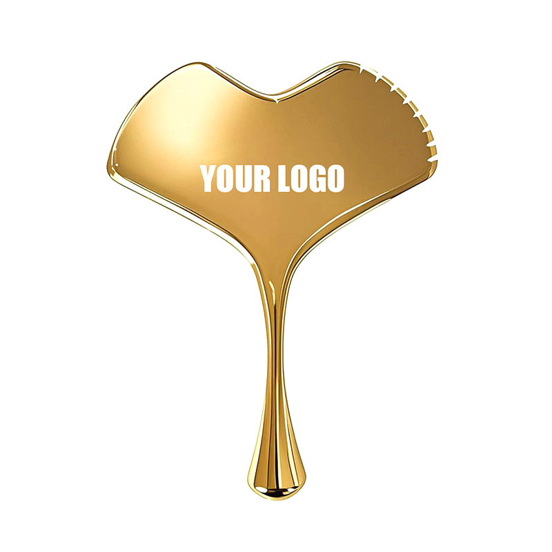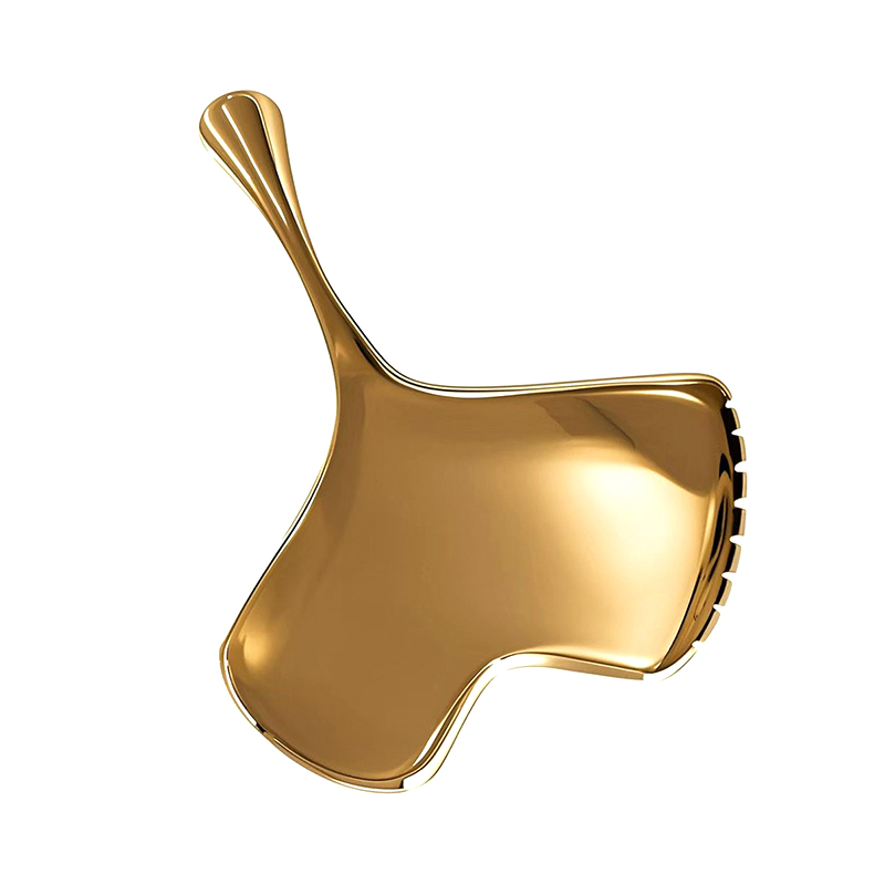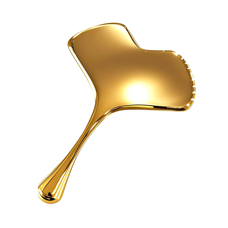 Il s'agit d'un outil de massage de soins de la peau en forme de feuille d'outils Guasha en acier.